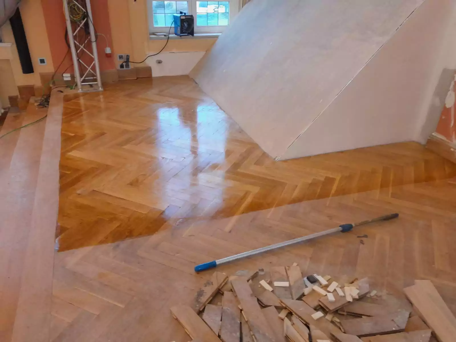 - Verlegung 700qm Stabparkett