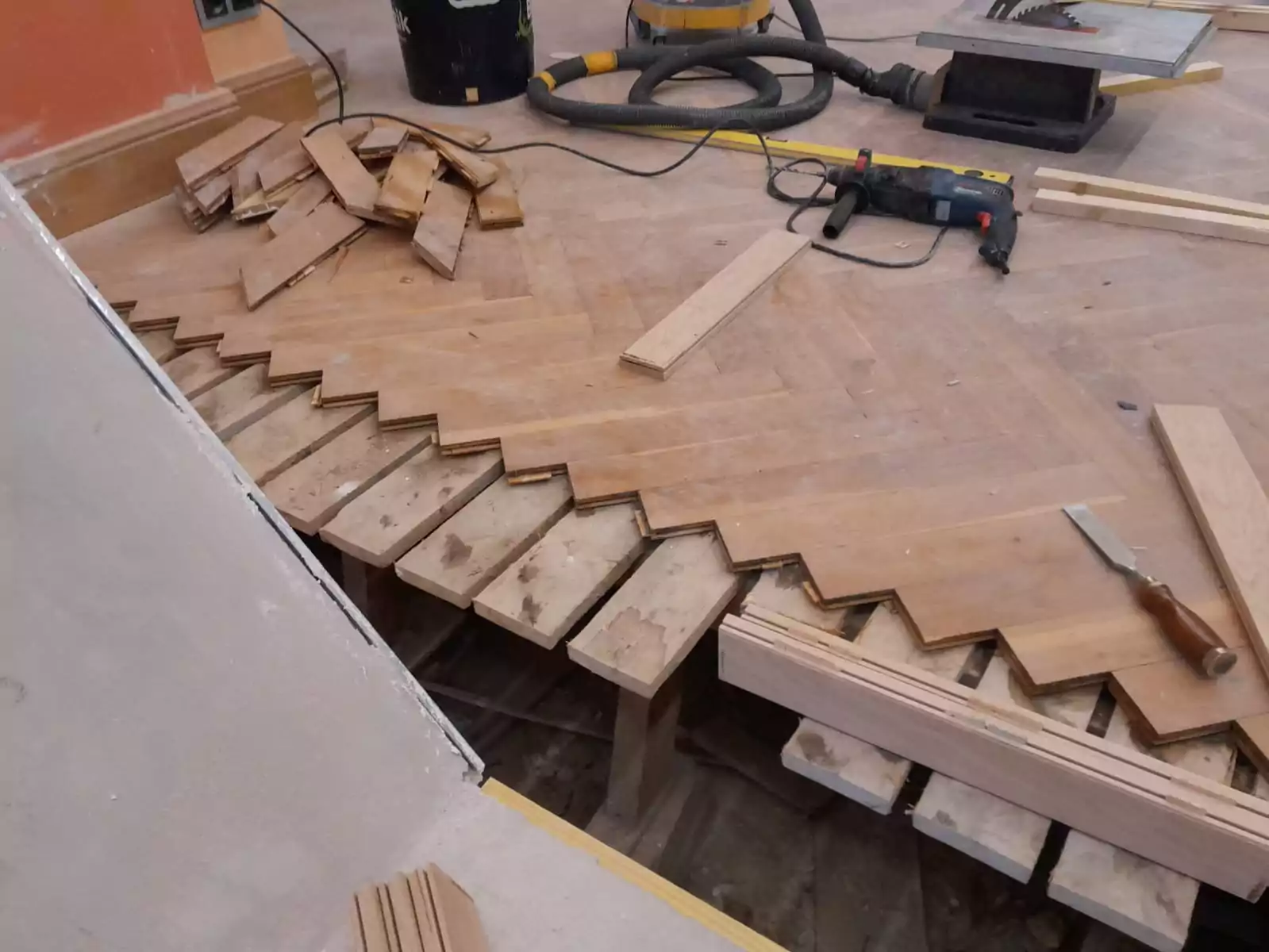 - Erstellung/ Reparatur von Unterböden mit Lagerhölzen/Schüttung sowie Verlegeplatten bzw. Fertigestrichplatten